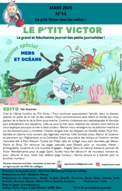 Par CAROLINE FLEURY, publié le jeudi 30 octobre 2025 15:30 - Mis à jour le jeudi 30 octobre 2025 15:30Le P'tit Victor met les voiles pour un dossier spécial Mers et Océans. Et toujours, les grandes actus, les p'tites infos et les pages spéciales. A lire en ligne ci-dessous, version papier au cdi. -