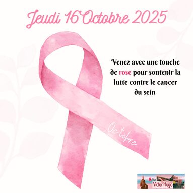 Par Christine Mace, publié le mardi 7 octobre 2025 17:18 - Mis à jour le mardi 7 octobre 2025 17:19Le collège Victor Hugo se mobilise pour "OCTOBRE ROSE". Jeudi 16 octobre, venez tous avec une touche rose pour soutenir la lutte contre le cancer ! -